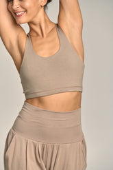 Vishnu, el guardián del equilibrio y la armonía, inspira este sujetador diseñado para acompañarte en tu práctica y en tu vida diaria. Con un corte ligeramente más largo y un diseño que equilibra comodidad y estilo, es una prenda versátil. Confeccionado con algodón orgánico certificado OCS y Modal Lenzing™, este sujetador ofrece suavidad, soporte y sostenibilidad.